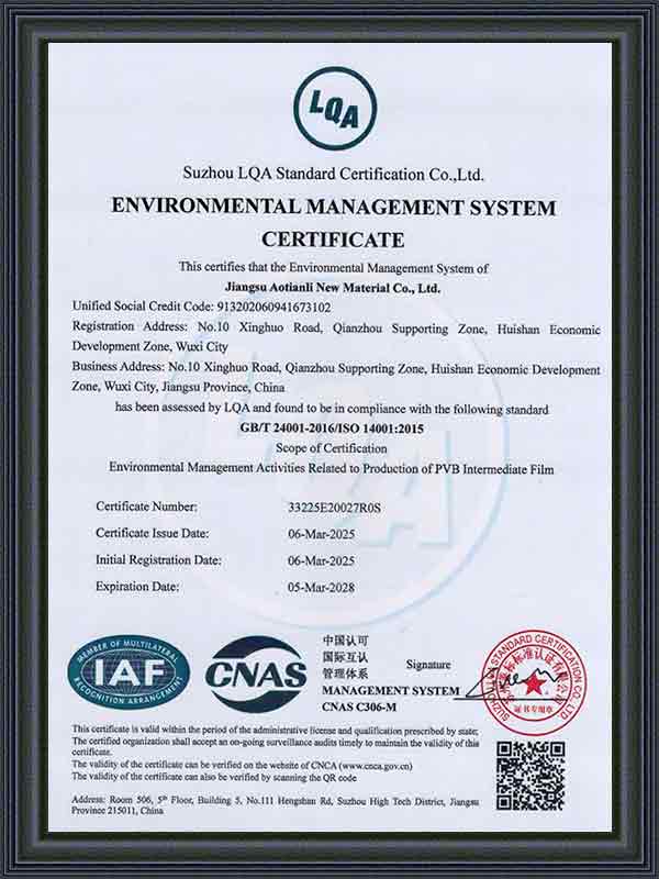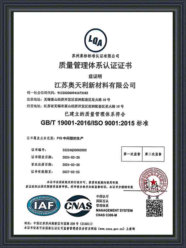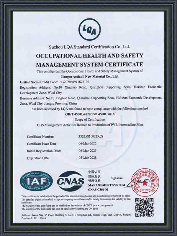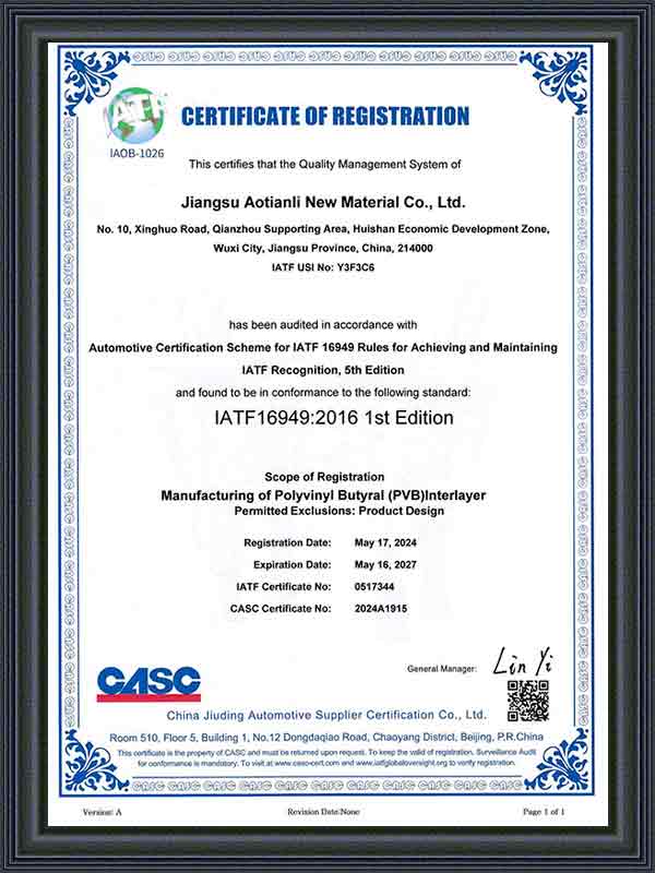 Ditubuhkan pada 2014 dan beribu pejabat di Wuxi, Wilayah Jiangsu, Jiangsu Aotianli New Material Co., Ltd. (ATL) ialah sebuah syarikat yang mengkhusus dalam penyelidikan, pembangunan, pengeluaran dan penjualan filem interlayer PVB berprestasi tinggi. dengan proses pengeluaran yang maju, inovasi teknologi yang berterusan, dan susun atur rantaian bekalan yang lengkap, ATL telah mewujudkan kedudukan penting dalam pasaran filem interlayer PVB domestik dan antarabangsa.
